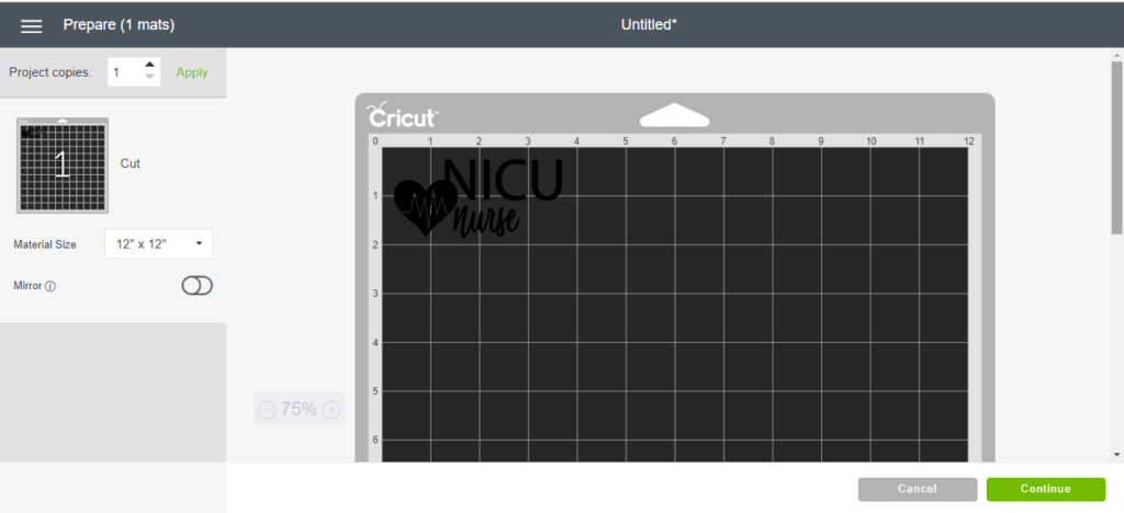 Click go along. Brand sure your Cricut machine is connected to your computer, tablet or mobile device and make sure the settings on your Cricut machine are set correctly (vinyl, cardstock, posterboard, etc.).